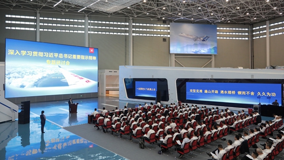 2025年5月23日,在習近平總書(shū)記視察公司十一周年之際,中國商飛舉辦深入學(xué)習貫徹習近平總書(shū)記重要指示精神專(zhuān)題研討會(huì ),重溫習近平總書(shū)記重要講話(huà)精神,牢記囑托,堅決扛起“大飛機事業(yè)一定要辦好”的職責使命。公司黨委書(shū)記、董事長(cháng)賀東風(fēng)出席會(huì )議并講話(huà),黨委副書(shū)記、總經(jīng)理沈波主持會(huì )議,黨委副書(shū)記、董事羅曉,黨委常委戚學(xué)鋒、于世海、羅興平、李玲、張小光、吳文生出席會(huì )議。